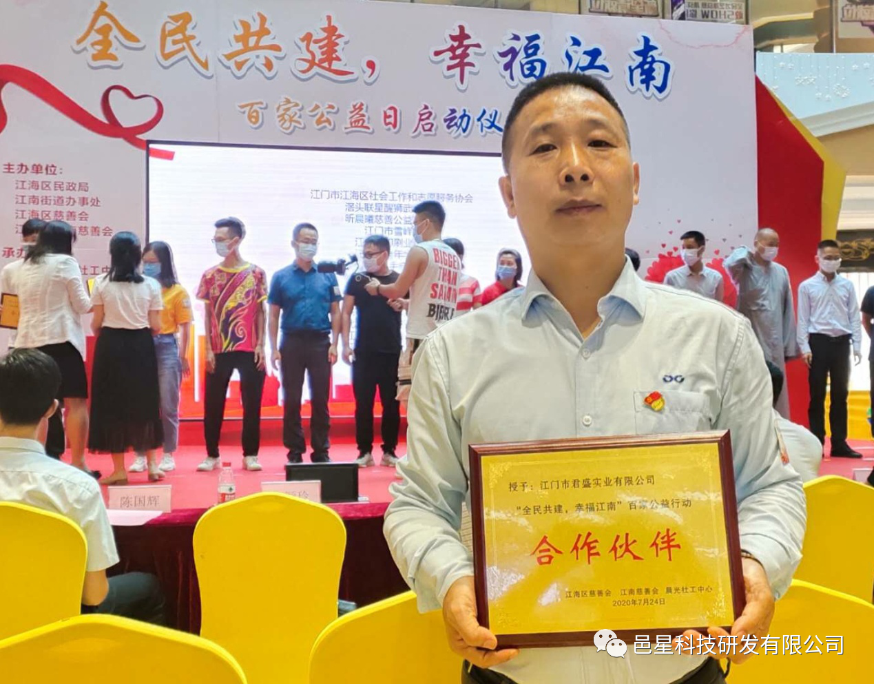 乐善有恒,大爱无缰。君盛实业有限公司在创造经济效益的同时,不忘社会责任,积极参与公益慈善活动。7月24日,受晨心社工中心的邀请,君盛实业常务副总经理李文英代表公司参加了“全民共建,幸福江南”百家公益日行动的启动仪式,现场区政府相关领导对君盛实业有限公司表达高度的认可并送上纪念牌匾。