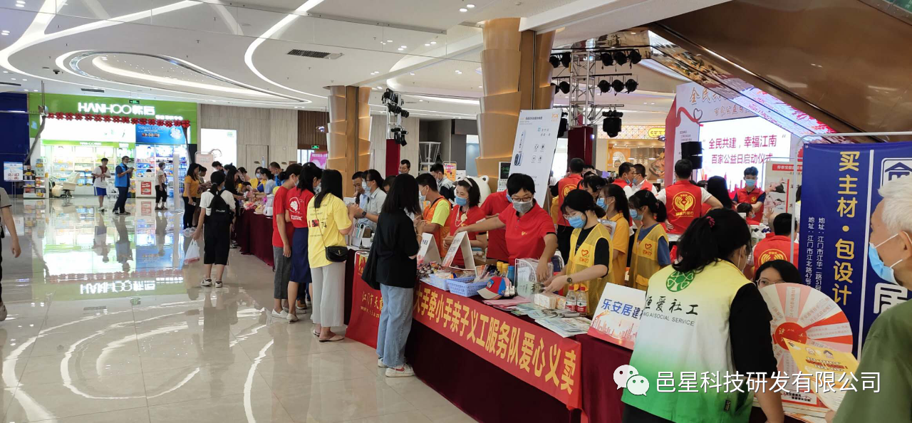启动仪式后,君盛实业携手邑星科技进行企业产品爱心义卖活动,义卖现场火热,多家企业产品纷纷登台亮相,而君盛实业和邑星科技的展台前尤为热闹,消费者们对君盛实业产品的质量过硬和邑星科技紫外杀菌产品的智能、高效频频称赞认可,一笔笔购物款也随之注入公益基金中。